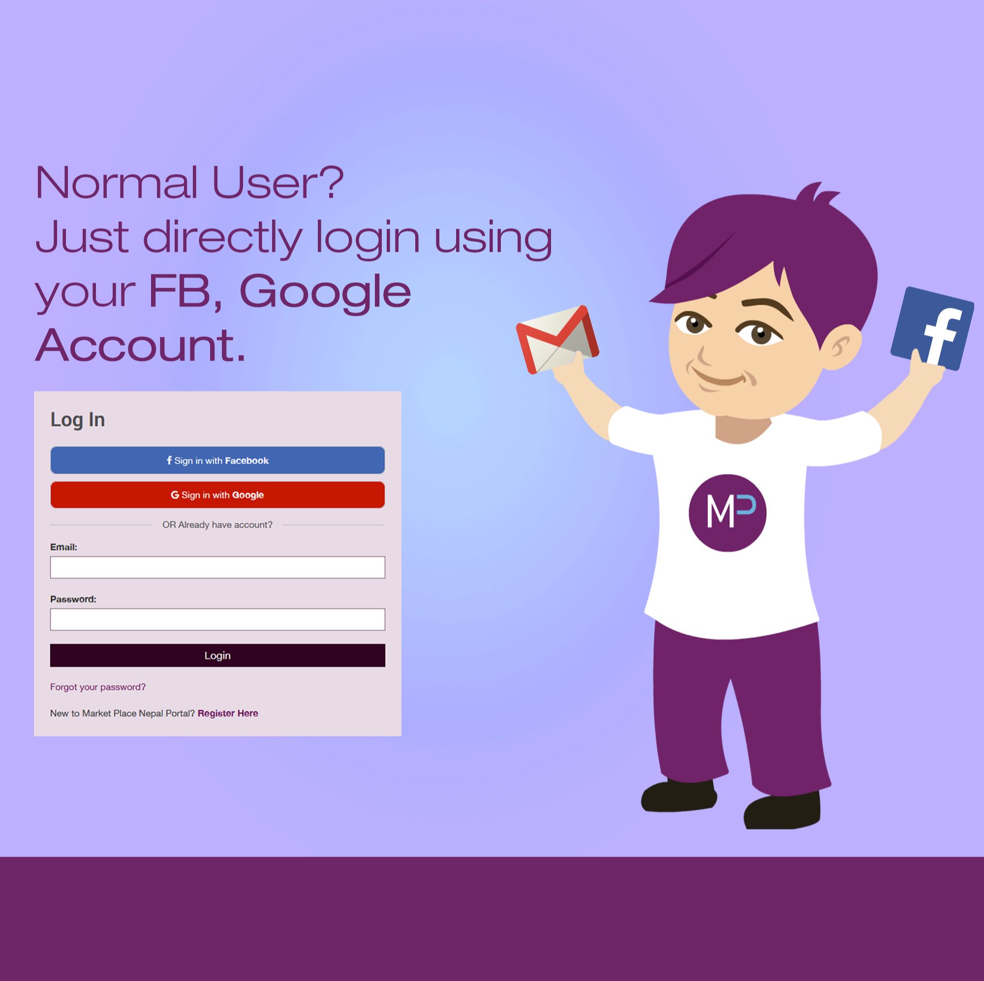 Normal Users can directly log in. No Registration- It's easy and fast !!!