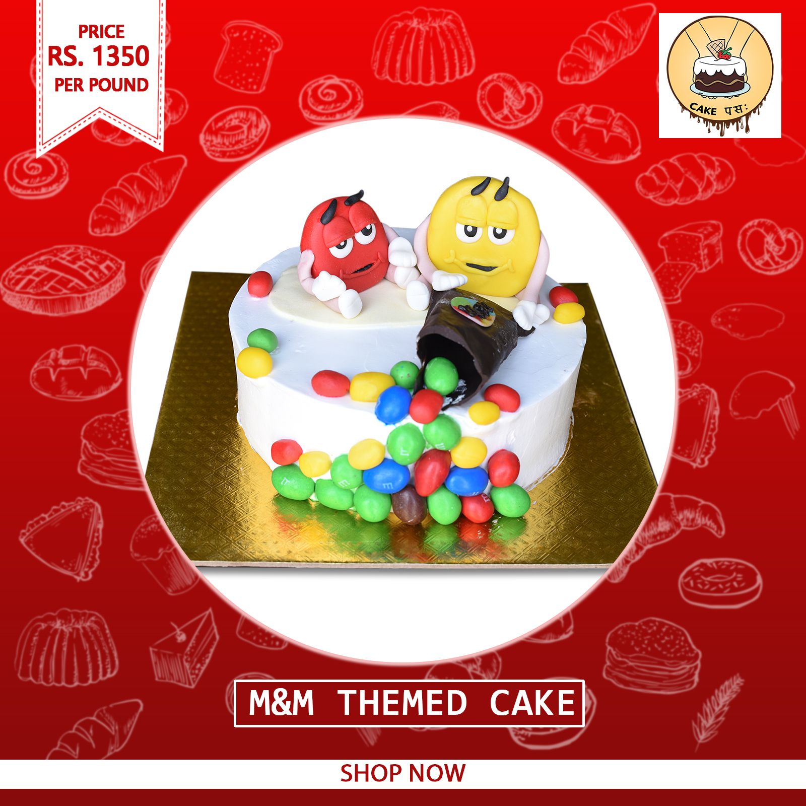 Cake for M&M lovers flooded with m&m chocolate with the option of Varieties of Cake Flavours.